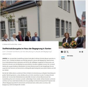 Fr. van Holt wird nun zukünftig , in Zusammenarbeit mit unserer langjährigen Mitarbeiterin Petra Winkels, die Leitung im Haus der Begegnung übernehmen.